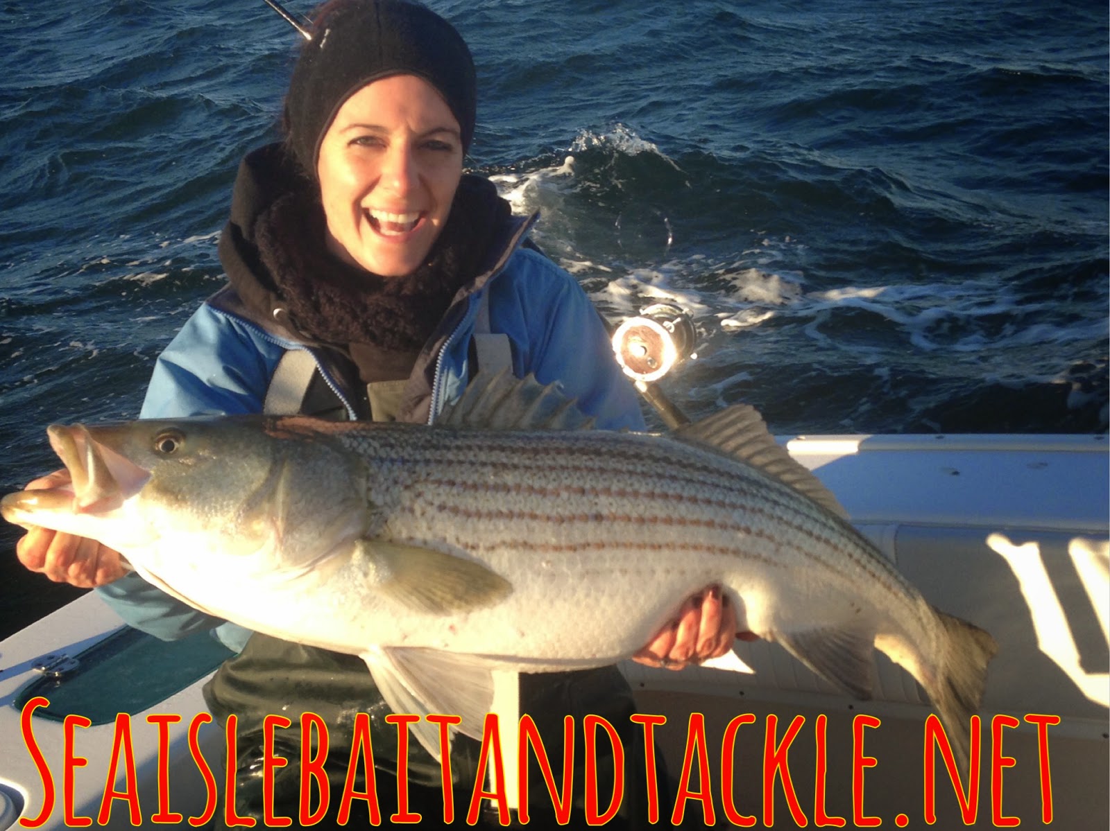 The winner of the South Jersey Striper Slam was team Maz on the Miss Lea with a 52.4 pound 50.25 inch monster of a striper trolling in the ocean